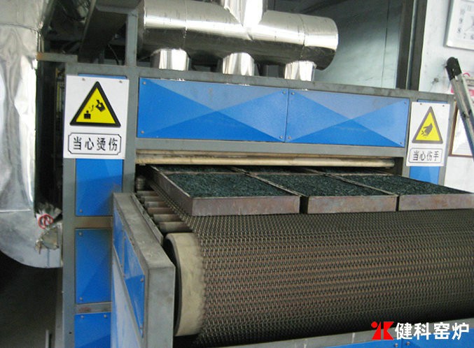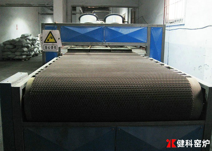 網帶窯屬於連續性窯爐,傳動方式為金屬網帶,金屬網帶由托輥或托板承載,主要用於陶瓷玻璃烤花、玻璃熱彎成型、玻璃退火、催化劑再生、粉體材料的幹燥、焙燒。按加熱方式可分為燃氣窯和電熱窯兩類。網帶根據溫度選用不同材質的不鏽鋼材料,受金屬材質所限,一般網帶窯使用溫度<900℃。